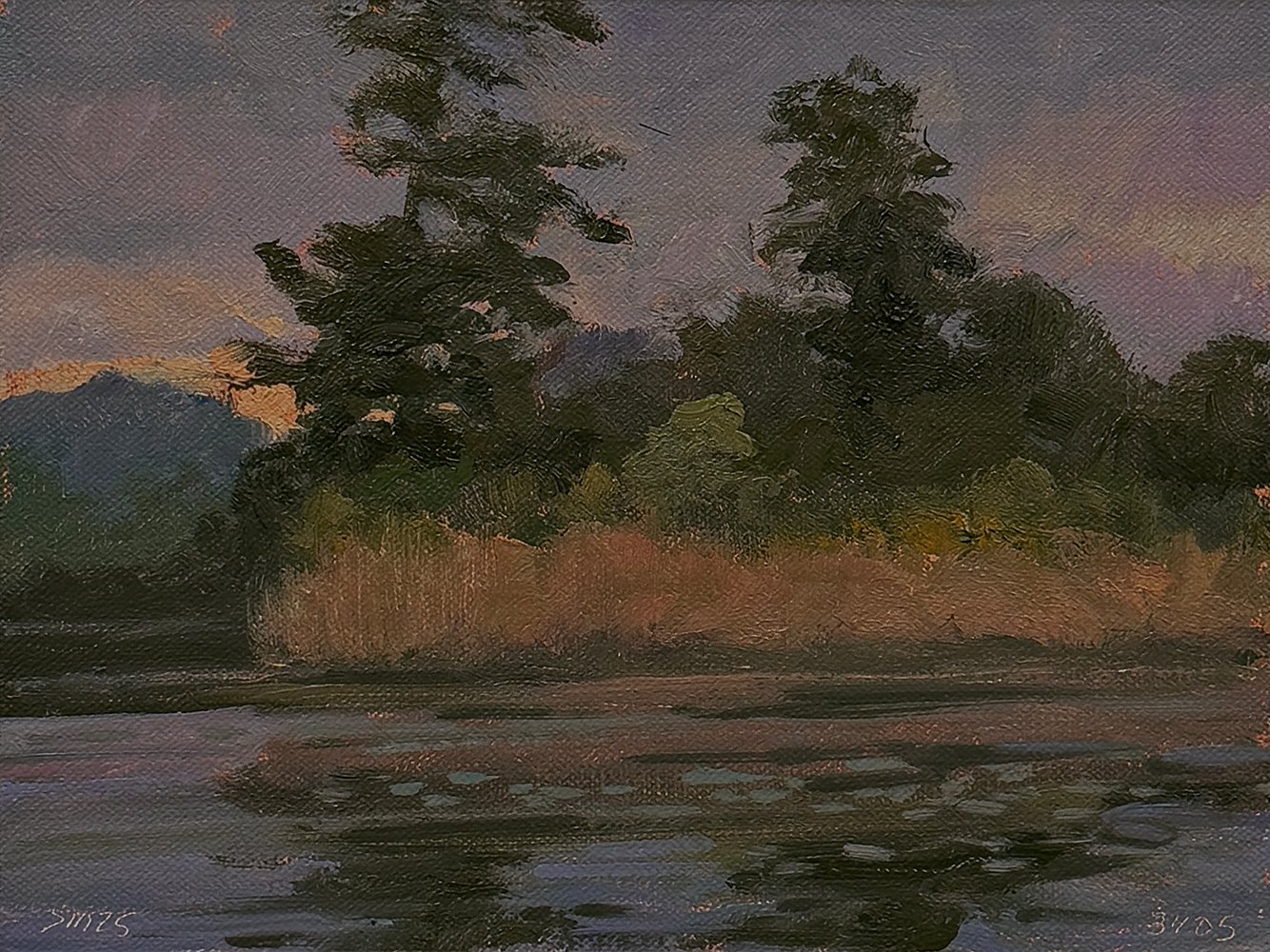 “Last Light Belle Isle” an original 2025 oil painting from the Postcards from Detroit series (est. 2001). Painted on a 6x8" RayMar linen panel, this signed, titled, and dated work captures an evening view of light and reflections on Lake Okonoka on Belle Isle Park in Detroit, Michigan. Catalog #3405. Unframed. A beautiful choice for collectors of Detroit landscapes, Belle Isle artwork, and original nocturne oil paintings. Please allow a few days for drying before shipment.